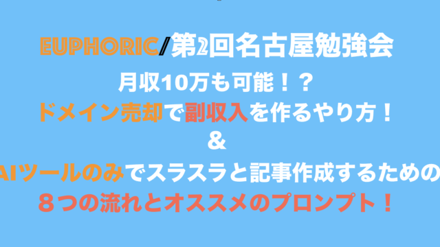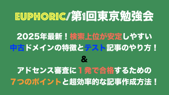 Euphoric1期/共通 【Euphoric/第一回東京勉強会】検索上位が安定しやすい中古ドメインの特徴&アドセンス審査に合格する7つのポイント! 2025年9月23日 shin-shin Euphoric会員サイト